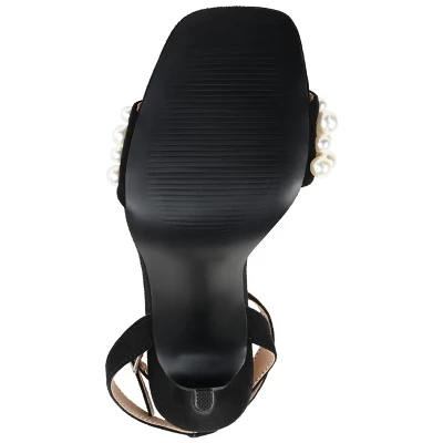 You’ll always be prepared to dazzle everyone in the room in Romey by Journee Collection. This toe strap sandal is made with a padded footbed and supple vegan leather uppers fastened by a buckled strap. Faux pearl beads crown the toe for a glamourous look. At Journee Collection, our pump styles will let you go from a fun night out with the girls to kicking back and relaxing at the end of the night without any trouble.