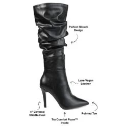 Add some sass to your favorite looks with the Sarie by Journee Collection. This slouchy extra-wide calf boot features a supportive 4 mm Tru Comfort Foam™ footbed and soft vegan leather for the perfect fit. A bold stiletto heel finishes the look for a leg-lengthening elevation. At Journee Collection, our boot styles will have your outfit looking even better than before. They will give you that finishing touch that will have your outfit looking straight out of a magazine.