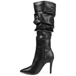 Add some sass to your favorite looks with the Sarie by Journee Collection. This slouchy extra-wide calf boot features a supportive 4 mm Tru Comfort Foam™ footbed and soft vegan leather for the perfect fit. A bold stiletto heel finishes the look for a leg-lengthening elevation. At Journee Collection, our boot styles will have your outfit looking even better than before. They will give you that finishing touch that will have your outfit looking straight out of a magazine.