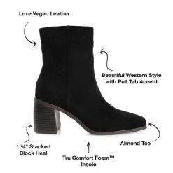 Journee Collection’s Sloann bootie is the epitome of subtly stylish. This vegan leather silhouette is detailed with a square toe and a seam through the center. A 4 mm Tru Comfort Foam™ footbed and a chunky block heel ground the design for a walkable lift. At Journee Collection, our booties will give you that comfortable yet stylish look, perfect for when you’re in the office all the way to a fun night out with the girls.