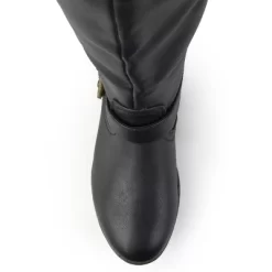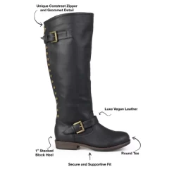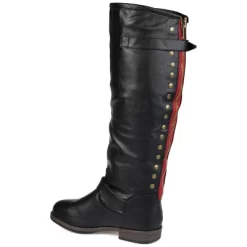 Set the trend this season in studded riding boots by Journee Collection. These chic boots feature premium faux leather uppers that rise to a knee height and feature a back zipper with stud detail. This boot is also available in a wide-calf boot style. At Journee Collection our boot styles will have your outfit looking even better than before. They will give you that finishing touch that will have your outfit looking straight out of a magazine.