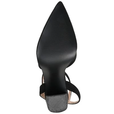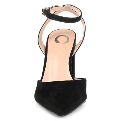Check out the Tyyra pumps by Journee Collection – a simple yet stylish heel that’s sure to make a statement. These heels feature a pointed-toe silhouette and are made with soft, vegan leather that’s comfortable to wear all day long. With a padded insole and wide-width footbed, these heels are designed for maximum comfort, while the covered block heel and ankle strap add a touch of sophistication to any outfit. Try the Tyyra pumps for a look that’s both fashionable and practical.