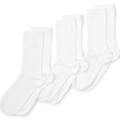Put your best foot forward with a little help from the Lands’ End School Uniform Seamless Toe Solid Crew Sock. Unlike traditional seamed socks that bunch in shoes and irritate toes our uniform seamless toe socks sit flat and smooth against the heel and toe for ultimate comfort. Plus the cotton blend fibers ensure your feet stay cool and dry in hot and cold weather alike. Moisture absorbing breathable with just-enough-stretch for added durability this is guaranteed to be one of the best womens dress socks you’ll ever own. Correction – 3 of the best pairs of dress socks you’ll ever own. Our Lands’ End School Uniform Seamless Toe Solid Crew Socks are available as a same color 3-pack multipack. Available in a variety of styles and sizes too so you can find your new favorite go to socks. Crew sock length covers the top of the ankle with sock cuff rise to the beginning of the calf. At Lands’ End we take pride in the quality of our manufacturing. Our products are designed to last and built with comfort at top of mind.