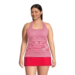 There’s something magic about finding the right swimwear. Put it on and you’re ready to play in the waves dive into the deep end or just sit back and watch the sun sparkling on the lake. And if you’re looking for something cute comfortable and versatile this Women’s Plus Size Chlorine Resistant Square Neck Halter Tankini Swimsuit Top is the place to start. Made from LYCRA Xtra Life spandex our tankini top is incredibly durable and lasts up ten times long than a suit made with regular spandex. It even resists damage from chlorine sun and sweat so you don’t have to worry every time you put it on. And speaking of sun it provides UPF 50 protection – the highest you can get. The soft cup bra offers gentle support and the ties are easy to adjust. Everything from board shorts to bikini bottoms looks good with this comfy top and you can even wear it with skinny jeans or a flowing skirt. It’s also perfect for anyone who likes needs tops and bottoms in different sizes. Just pair it with whatever works best and you’ll be ready to go.