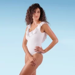 The Liberty & Justice Women’s High Leg Cheeky with Ruffle Neckline One Piece Swimsuit is a must-have for your next beach vacation. Made from rich, comfortable fabric, this one-piece swimsuit features a high-leg cut that provides coverage and support, while the cheeky bottom and ruffle neckline show off your curves.