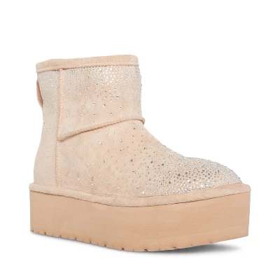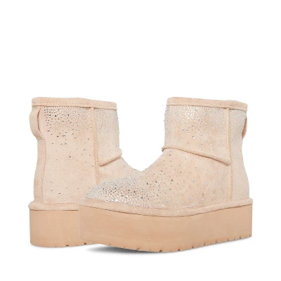 The Ease-hr bootie from Madden Girl is the perfect combination of glitz and comfort. This stylish pair is fashioned with sparkles and iridescent rhinestones that cover these ankle booties.