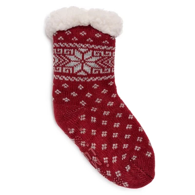 Soft, warm, and comfy, MUK LUKS® Kids’ 1 Pair Pack Cabin Socks are perfect for when chilly temps arrive. Soft knit and faux fur keep toes warm while fun designs dress your little one in style. Machine wash cold on gentle cycle, no bleach, tumble dry low heat. Imported.- 100% Acrylic Knit- 100% Polyester Faux Fur Lining-Multiple Color Options-US Kids’ Sizes S (8-10), M (11-13), L (1-3)