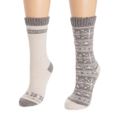 Keep the cold out and the warmth in with MUK LUKS? Men’s 2 Pair Pack Wool Socks. Blended with wool, these socks will not only keep toes warm, you’ll also look stylish with fun patterns.