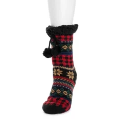 Cozy and warm, MUK LUKS® Women’s Tall Cabin Socks are the best for when temps drop. Sweet knits pair with ultra-soft faux fur to create a warm, comfortable sock you wonÂ’t want to take off. Machine wash cold on gentle cycle, no bleach, tumble dry low heat. Imported.- Non-Skid PVC Dot Sole – 93% Acrylic, 7% Polyester Knit- 100% Polyester Faux Fur Lining- Pom and Tassel Detail- Multiple color options available- US Women’s Sizes S/M (5-7), L/XL (8-10)