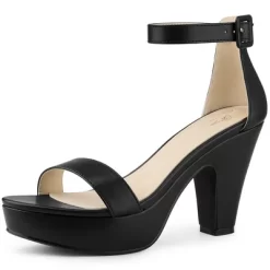 - FEATURES: Open Toe; Chunky Heels; Platform Heels; Buckle Closure; Slingback Heels