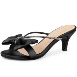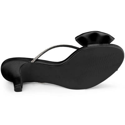 - [ FEATURES ]: Open Toe; Slip-on; Rhinestone Strap; Bow Heels; Kitten Heels