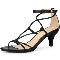 - FEATURES: knot; open toe; strappy; kitten heels sandals
