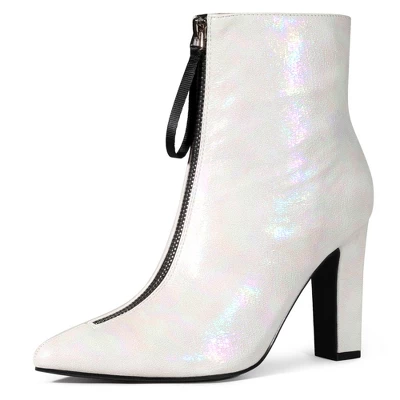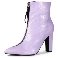 - Chunky Ankle Boots. Pointy Toe, Block High Heel Booties, Side Zip, Cushioned Insole; Lightly Padded
