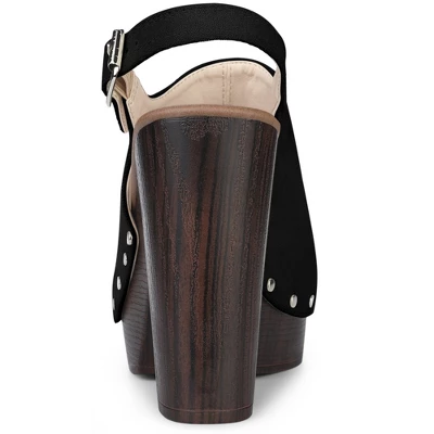 - open toe; chunky heel; buckle closure; slingback; cut out design; lightly padded; classic shoes