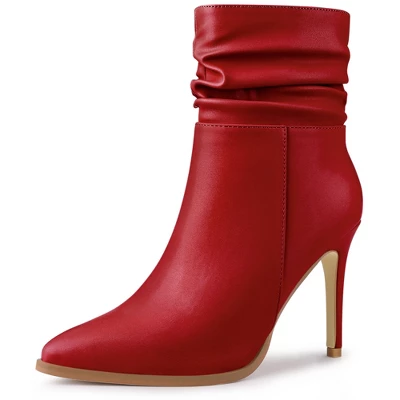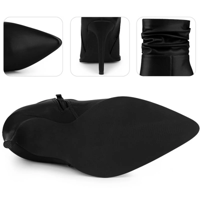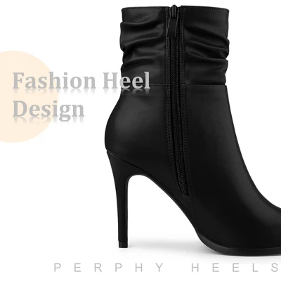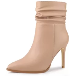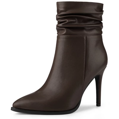 - Slouching Stiletto Heel Ankle Boots, Pointed Toe, Side Zip