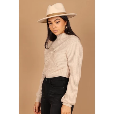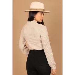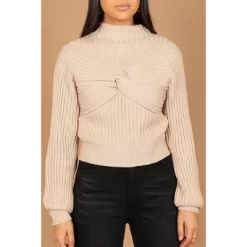 Are you looking for a way to show off your curves while staying warm and cozy? Look no further – our Cropped Length Knit with High Neckline is the perfect way to do just that! This top features long sleeves, a front twist knot, and an all-over ribbed knit material.