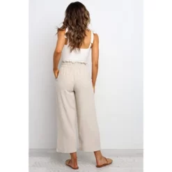 Introducing the versatile pant of the season – our high waisted linen blend pant featuring an elasticised ruffle waistband and drawstring tie. Perfect for dressing up or down, these pants are sure to be a wardrobe staple!