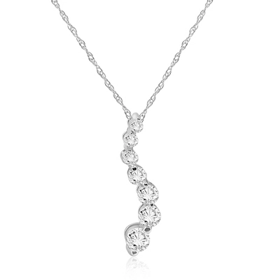- Let the journey begin. 7 round, brilliant cut diamonds prong set in 14k white gold. Includes 16″ 14k white gold chain. Pendant is 3/4 inch tall.