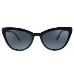 These Prada Catwalk PR 01VS 1AB5Z1 womens cat-eye sunglasses, feature a black plastic frame and grey polarized lenses. Size and dimensions for the Prada model PR 01VS are lens 56mm x bridge 20mm x temple 145mm. This frame will come with Prada box, case, cloth and paperwork, and they can be fitted with your prescription by your eye doctor.