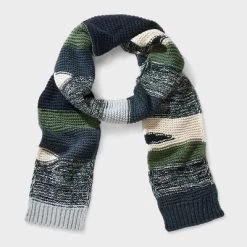 Multicolor knit oblong scarf from Wild Fableā¢. Made from pre-consumer recycled polyester midweight fabric. Features a single-layered construction with ribbed ends.