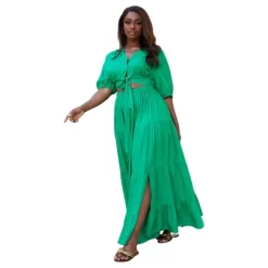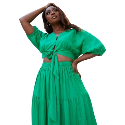 This short-sleeved, cropped blouse with a tie front detail is perfect for a playful summer look. The matching high-waisted shorts sold separately add a retro-inspired flair to your ensemble. With its witty yet understated style, this two-piece set is ideal for injecting some fun into your warm-weather wardrobe. Whether worn together or as separates, this versatile top and bottom duo allows you to create countless chic outfits for any occasion.