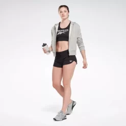 Take on your day in these comfortable Reebok shorts for women. They’re made of a soft French terry blend that feels cozy and smooth to the touch. Shaped hems give it a flattering look that stays close to the body for a snug feel.