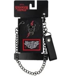 Dive into the thrilling universe of Stranger Things with our Tri-fold Chain Wallet. This captivating accessory effortlessly combines the chilling aesthetic of the renowned series with practical design. The front of the wallet showcases a vivid Demogorgon Hunter logo, featuring a detailed depiction of the infamous creature from the series. Flip to the back to discover a metal Hellfire Club Skull applique, a nod to the series’ iconic group. Complementing this is a sewn-on, raised Hellfire Club patch, adding depth and texture to the wallet’s design. The inside has a clear ID display, 5 card slots, and one billfold pocket. It comes with a 13″ removable silver burnished metal chain.