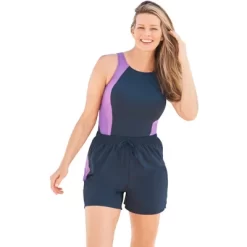 Go for the “wow factor” in this high-neck style. Featuring contrast colorblock detail and an eye-catching open-circle back closure, it’s a surefire way to enjoy some fun in the sun. Molded foam cups for bust support. Front power-mesh lining for tummy control. Fully lined. Swim Solution: Tummy ControlNylon/spandexHand washImported