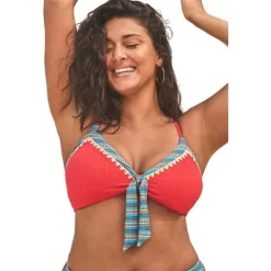 Bold, confident and fit to flatter, the Mentor Tie Front Ribbed Bikini Top brings the heat to your next vacay (and every day!) With adjustable straps, tie-front detail and ribbed textured fabric, this style is expertly designed to fit and flatter. Wear it with our matching Mentor Ribbed High Waist Bikini Bottom or with any of our swim bottoms to create a bikini that’s all your own.