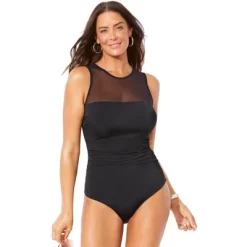 Meet the one piece you’ll want to live in all summer long! The Mesh High Neck One Piece gives you comfort, coverage and style all in one, with its high mesh neckline and expert design details. Built-in shelf bra gives you all-day bust support and Power Mesh front and back lining provides smooth shaping.