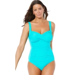 When you want to show off some beachy glamour, this is the swimsuit that lets you glow. Designed with ruched detail and a Fun, twist-front sweetheart neckline for striking style, it also has a Power Mesh lining for smoothing tummy control. Go ahead bask in its beauty.