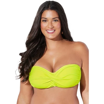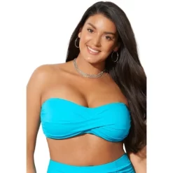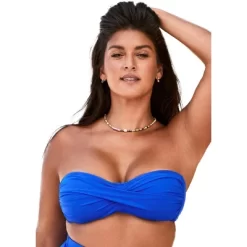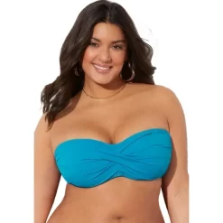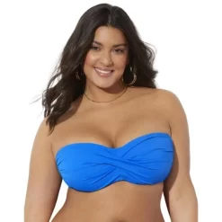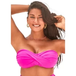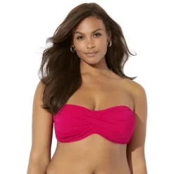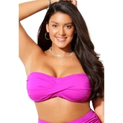 Bring the heat in the versatile bikini top that gives you two looks in one! Our twist-front Valentine Ruched Bandeau Bikini Top has removable, adjustable straps so you can opt for a strapless look if you wish! Plus, built-in side bra boning and sewn-in bra cups offer comfortable support. You’ll love this look paired with any of our swim bottoms.