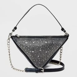 Lightweight crossbody bag from Wild Fable⢠designed in a triangle shape with a matching handle at the top. Faux-leather construction features a roomy main compartment with a zipper closure. Detachable faux-leather strap with a buckle lets you adjust the length to your liking, and the metal chain accents on the ends complete the design.