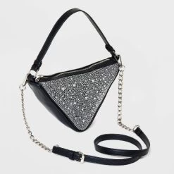 - Triangle-shaped crossbody bag