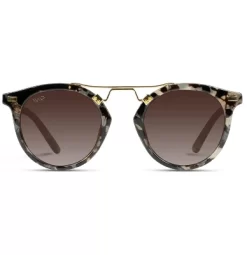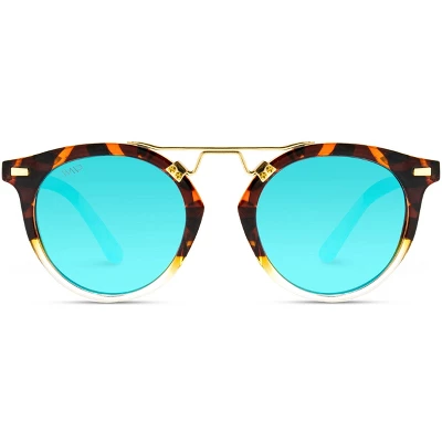 These circular-shaped sunnies offer effortless charm and endless compliments thanks to their distinct double bridge design. Sleek stainless steel accents and attention-commanding color combos add to their retro-inspired wow factor. Choose from four timeless tortoiseshell frame options paired with solid or mirrored polarized lenses complete with 100% UVA/UVB protection.