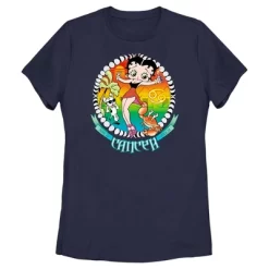 - Enjoy comfort and fashion at the same time with this unique women’s graphic tee design from Betty Boop.