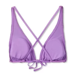 Add fashionable texture to your swim look with this Crochet Center Front Ring Triangle Bikini Top from Shade & Shore™. This triangle bikini top features blue and pink stripes over a crochet-textured purple backdrop, and has a metal ring front for chic flair. Made from soft and stretchy opaque fabric, it offers flexible comfort whether you are swimming or lounging on the shore. The crisscross back with an adjustable tie closure helps you find a custom fit, and the removable padded cups offer customizable coverage.