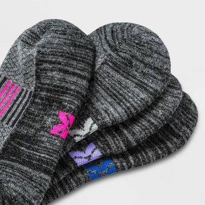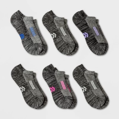 No-show athletic socks made from a moisture-wicking fabric with ventilating mesh help keep your feet cool and comfy during a range of athletic activities. The socks are thoughtfully created with arch support as well as zone cushioning on areas of the feet that need it the most, and smooth toe seams, a reinforced heel and toe, and Y-heel stitching complete the comfortable fit. Plus, the socks come in solid gray with sporty stripes for a sleek look, with a no-show cut that’s perfect for low-profile footwear.