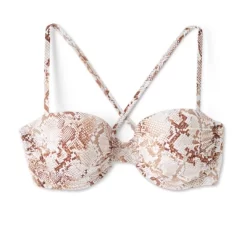 Score a swim look that’s both stylish and comfy with the Light Lift Shirred Underwire Bikini Top from Shade & Shore™. This shirred bikini top features a snake print that’s sure to turn heads along with a crisscross back tie-closure to create a playful overall look. The molded cups with underwire offer light lift and structure for a flattering look. Made from a lightweight, stretchy fabric, this underwire bikini top offers you flexible movement no matter where your day takes you. Pair this underwire bikini top with matching bottoms and your favorite floppy hat for a complete look.