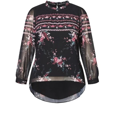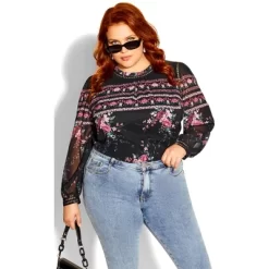 Steal the show whether you’re in the office or enjoying the weekend with the Adele Top. Featuring long button cuffed sleeves, semi-sheer floral printed overlay and subtle puffed shoulders, this top always bring your A-game. Bold and fiercely fashionable, no one does plus size fashion like City Chic. Loved around the globe for its diverse range of fashion-forward styles for any occasion. From show-stopping evening gowns to workwear and casualwear, City Chic will take your style to bold new heights. Available in sizes 14-32.