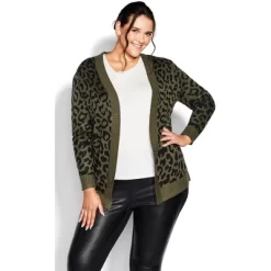 The olive hue and animal print of our Longline Print Cardigan help you make a seamless statement with your everyday style. A hip length hemline also adds versatility to this piece of knitwear. Everyday style made easy, Avenue is your one-stop-shop for plus size fashion. Inspired by a comfort-meets-style approach, this effortless brand marries relaxed silhouettes with dynamic prints and colors. From casual daywear to staple denim, Avenue has simplified your everyday dressing. Take your day-to-day look to new heights with comfortable basics or eye-catchingly printed pieces, all designed to keep you comfortable while flaunting your curves to perfection. Available in sizes 14 – 40.