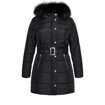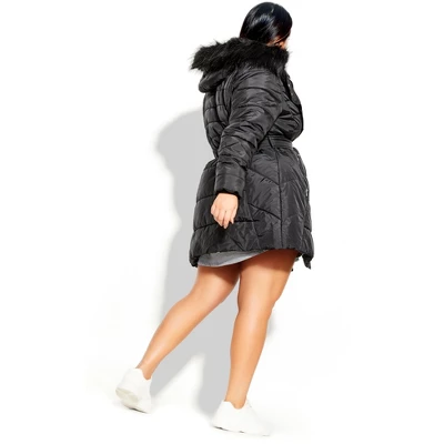 From soccer saturdays to winter date nights, the Longline Puffa Jacket features a quilted design & faux fur hood trim. Pair it with skinny denim & knee high boots to complete the look.Bold and fiercely fashionable, no one does plus size fashion like City Chic. Loved around the globe for its diverse range of fashion-forward styles for any occasion. From show-stopping evening gowns to workwear and casualwear, City Chic will take your style to bold new heights. Available in sizes 14-32.