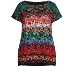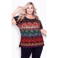 Flutter through the seasons in the relaxed and breathable fit of the Mixed Media Top. This eye-catching style features short sleeves, soft-touch woven fabrication with a contrast stretch knit back, and a hi-lo hemline. Everyday style made easy, Avenue is your one-stop-shop for plus size fashion. Inspired by a comfort-meets-style approach, this effortless brand marries relaxed silhouettes with dynamic prints and colors. From casual daywear to staple denim, Avenue has simplified your everyday dressing. Take your day-to-day look to new heights with comfortable basics or eye-catchingly printed pieces, all designed to keep you comfortable while flaunting your curves to perfection. Avalable in sizes 14 – 40.