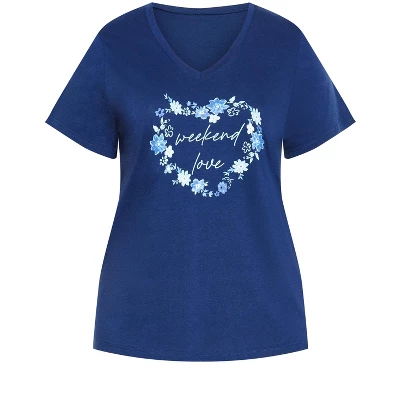 Get ready to bring on the lazy weekends in style! For maximum comfort, team this Weekend Love Sleep Top with navy sweatpants or shorts whatever works best for you! This Weekend Love Sleep Top comes in a versatile navy hue and features short sleeves and a hip-length hem. The relaxed silhouette ensures a good night’s sleep, while the graphic detail adds a touch of fun. Wear it with navy sleep pants for a coordinated look. Everyday style made easy, Avenue is your one-stop-shop for plus size fashion. Inspired by a comfort-meets-style approach, this effortless brand marries relaxed silhouettes with dynamic prints and colors. From casual daywear to staple denim, Avenue has simplified your everyday dressing. Take your day-to-day look to new heights with comfortable basics or eye-catchingly printed pieces, all designed to keep you comfortable while flaunting your curves to perfection. Available in sizes 14 – 40.
