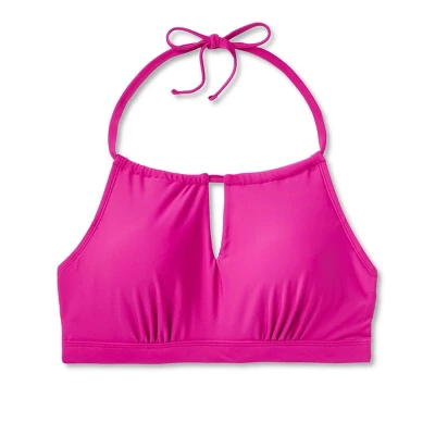 Enjoy your day at the beach or by the pool with confidence, comfort and contemporary style in this Women’s Post-Mastectomy High Neck Keyhole Bikini Top from Kona Sol™. This keyhole bikini top’s opaque construction from soft fabric with spandex includes a partial lining, and features removable cups for poise and assurance both in and out of the water. Plus, this sleeveless high-neck swim top’s eye-catching halter design pairs well with solid or printed bikini bottoms to create limitless combinations you’ll love.