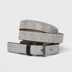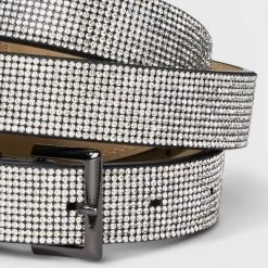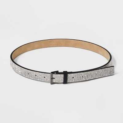 Black faux-leather belt from Wild Fable™ covered with a layer of clear, sparkly rhinestones. Features 36-inch length with multiple holes for a customizable fit and a silver-finish buckle closure.