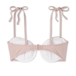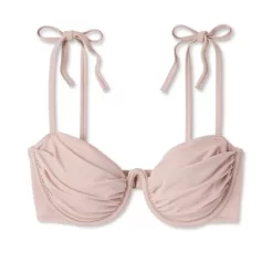 Create an on-trend swimwear look that’s sure to draw a lot of attention with this Shoulder-Tie Shirred Underwire Bikini Top from Shade & Shore™. The bikini top is crafted from soft and stretchy material to take you through any waterside excursion in absolute comfort, and features a shirred front for a little extra shaping. The underwire removable padding lets you customize your coverage level for a right fit every time, while a back hook-and-loop closure and shoulder ties help to create a custom fit. Mix things up with printed bottoms or pair with a matching swim bottom for a chic beach look you’ll love wearing.
