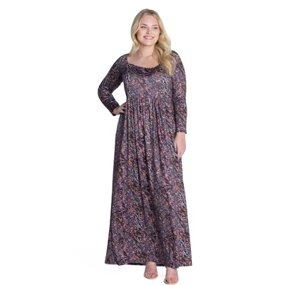 Embrace the enchanting beauty of autumn with our Fall Floral Long Sleeve Pleated Plus Size Maxi Dress. This stunning dress boasts a captivating multicolor abstract floral print on a rich black canvas, making it a perfect blend of boldness and elegance. The delicate square neckline adds a touch of femininity, while the figure flattering pleated waist accentuates your curves for a confident and flattering silhouette. The maxi length exudes grace and sophistication, while the long sleeves provide both coverage and a hint of refinement. Crafted from a soft and comfortable stretch material, this dress ensures all day comfort without compromising on style. Effortlessly transition from casual day outings to dressy evening occasions with the right accessories. Get ready to make a statement and captivate the room with this stunning fall floral long sleeve pleated maxi dress that combines comfort, style, and timeless beauty.